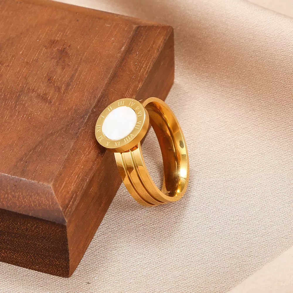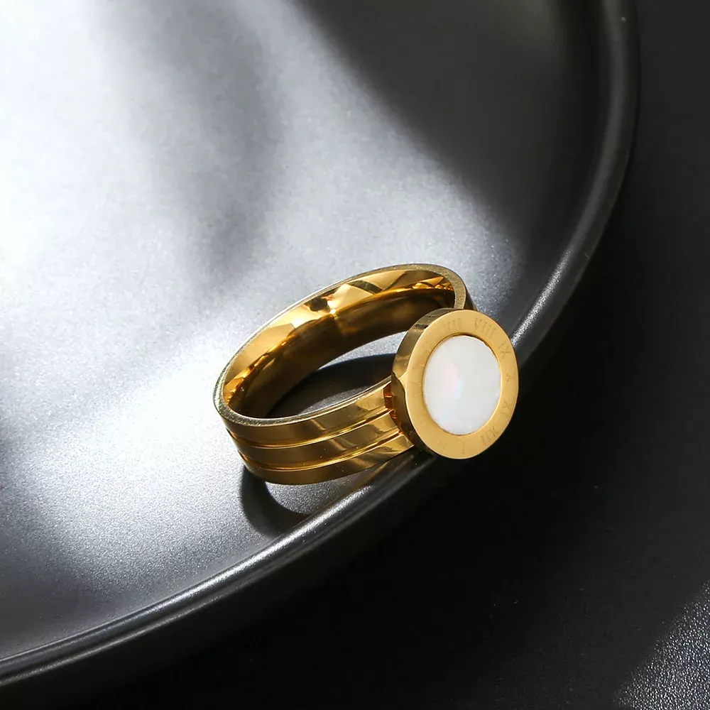 Elegant Stainless Steel Roman Acrylic Shell Ring for Women