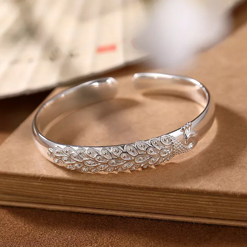 Owning this accessory has been a delight; its allure lies not only in its stunning visual appeal but also in the nuanced details that embody the spirit of the peacock. The craftsmanship is impeccable, with a design that interweaves elegance and symbolism. The metal provides a perfect backdrop for the gemstone inlays, which sparkle like dewdrops under sunlight, adding a vibrant contrast. The piece feels significant yet comfortable on the wrist, suggesting a careful consideration of form and function in its creation. Its presence is commanding, yet it maintains a sense of delicacy, making it suitable for both everyday wear and special occasions. The durability of the material means it retains its luster without excessive maintenance, symbolizing a blend of practicality and luxury. It's become an essential part of my jewelry rotation, offering versatility and timeless style